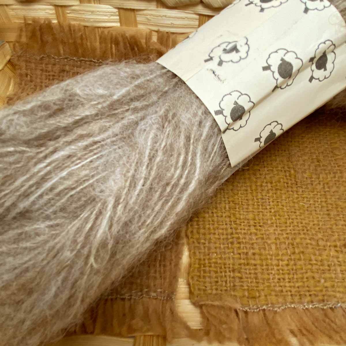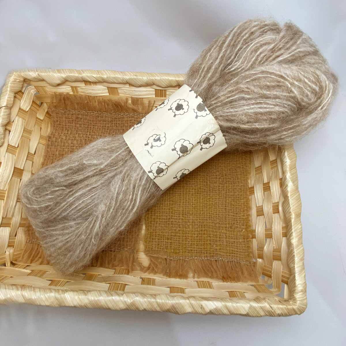 北海道産の淡いベージュのペレンデールです。ハリと柔らかさを合わせ持った長い毛質を生かし、ふわふわに紡ぎました。